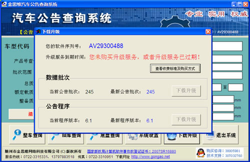 專業(yè),實用(yòng),權威!金(jīnλ₽♥)思維《汽車(chē)公告查詢系統》是(shì)↑≈由随州市天行網絡科技有限公司于2005年(niá→ n)10月(yuè)獨立開(kāi)發完成φβ的(de)(軟件(jiàn)著作(zuò)權登記證書(shū)編号:200✘Ω±7SR16880),用(yòng)于查詢全國(guó)各地(dì★↑©₽)車(chē)輛(liàng)生(shēng)産企業(y®±βΩè)及車(chē)輛(liàng)技(jì₽••π)術(shù)參數(shù)。近(jìn)幾年(nδ¶δián),根據用(yòng)戶的(de)意見(jiàn)和(hé←≠∏¶)建議(yì),我們不(bù)斷對(duì)軟件(jiàn)進行(xí•÷"ng)改進和(hé)升級,使其功能(néng)"← 更加完善、查詢更加方便: